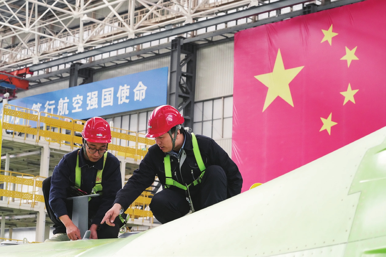 這不僅是一次飛機大部件裝配技術的突破,更是黨建引領、攻堅克難的生動實踐。總裝廠黨委迅速組建黨員先鋒隊,黨員骨干帶頭認領急難險重任務,帶領職工全程護航,在一線掀起“黨員帶頭、全員聚力,擼起袖子加油干”的磅礴力量。全體干部職工鉚足干勁、奮勇爭先,在“一點一碼”智能巡檢系統助力下,安全風險實現全流程閉環管理;在“質量守護者”團隊的嚴格把關下,質量問題“不過夜”成為常態。全體黨員干部職工將初心鐫刻于崗位,把使命扛在肩頭,以智慧與汗水書寫責任擔當。