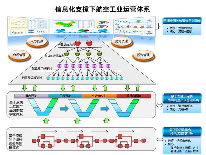 系統工程生命周期流程集、基于模型的系統工程(MBSE)方法和先進的IT使能技術的應用,適應航空工業從傳統系統、復雜系統到復雜組織體系統的發展和演進趨勢,滿足不斷變化的、各利益攸關方的需求,實現產品開發體系從傳統的基于文件的模式轉變為基于模型的工程協同,使模型應用從設計到仿真、制造等環節不斷延伸覆蓋,持續提升航空產品的研制能力和水平。