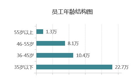 集團公司共有經營管理人員7.7萬人,占在崗職工的17.9%;專業技術人員12.2萬人,占在崗職工的28.3%;工勤技能人員23.1萬人,占在崗職工的53.8%。